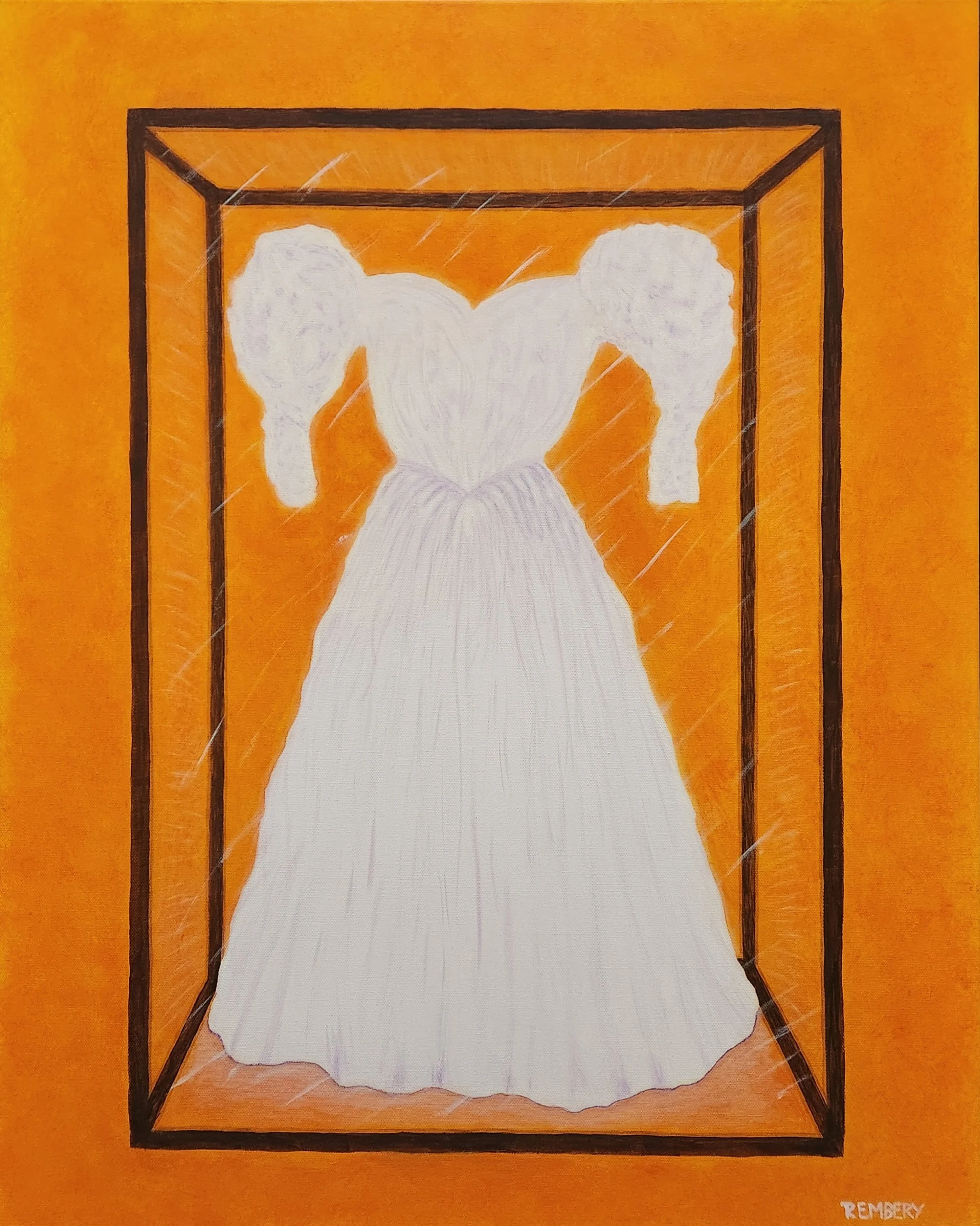 In this case, the overt start of the journey came with a picture I saw some months back in the place between being awake and asleep. It was so strong, I immediately woke up. The image was of a bride’s dress as I have tried to depict in this painting. In my mind’s eye, I saw a wedding dress and it seemed quite crumpled – not in the sense of having been tossed aside, but as in requiring a body to fill it out. As I reflected with Jesus on this dress, I had the sense that He had it kept in a place ready for the Bride to wear it, hence the glass case.